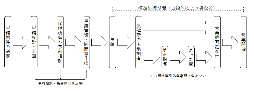 これらの営業許可を取得するためには,その施設を管轄する保健所に申請を行い、その施設が管轄する都道府県条例の定める基準に適合する必要があります。